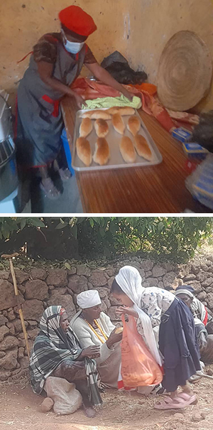 De eerste geproduceerde broden werden symbolisch uitgedeeld onder de armen die zich dagelijks rond de wereldberoemde rotskerken verzamelen.